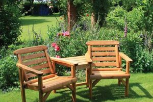 The causal relationship between material selection and durability is demonstrably evident in real-world scenarios. Furnishings constructed from untreated wood, when exposed to moisture, are prone to rot and insect infestation, leading to structural failure. Conversely, those crafted from teak or synthetic polymers exhibit superior resistance to these elements, extending their usability. Furthermore, the implementation of robust joinery techniques, such as welding or high-tensile bolting, reinforces structural stability, mitigating the risk of breakage under stress. Retailers often provide warranty periods reflective of the anticipated lifespan, serving as an indicator of the manufacturer’s confidence in the product’s durability.